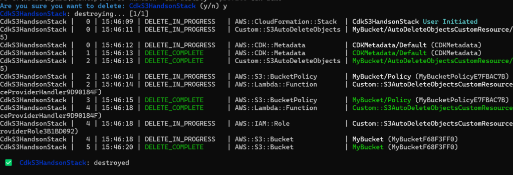 - これでS3バケットも含め、今回作成したリソースがすべてきれいに削除されます。