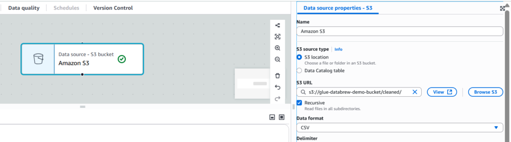 • S3 URL:s3://glue-databrew-demo-bucket/cleaned/