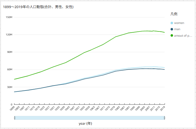 同じように、1899~2019年の人口動態をグラフ化します。