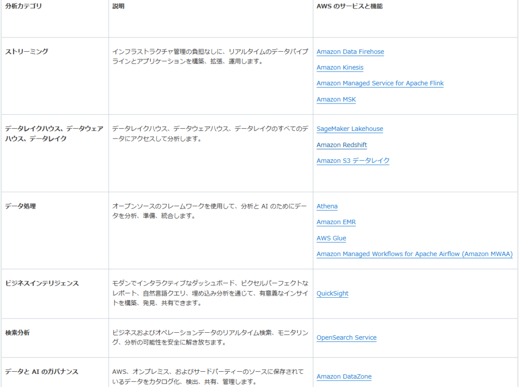 [AWS での分析](https://aws.amazon.com/jp/big-data/datalakes-and-analytics/?nc=sn&loc=0)