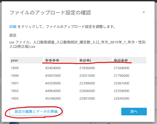 ・年次カラム内の千と百の位が省略されているレコードが存在しており、時系列としてデータを読込ませることができないため補完する必要あり。