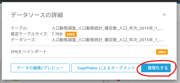 次へを押下 >視覚化するを押下し、データ取り込み完了となります。