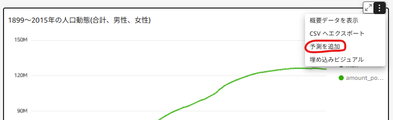 メニューオプションから予測を追加を押下します。